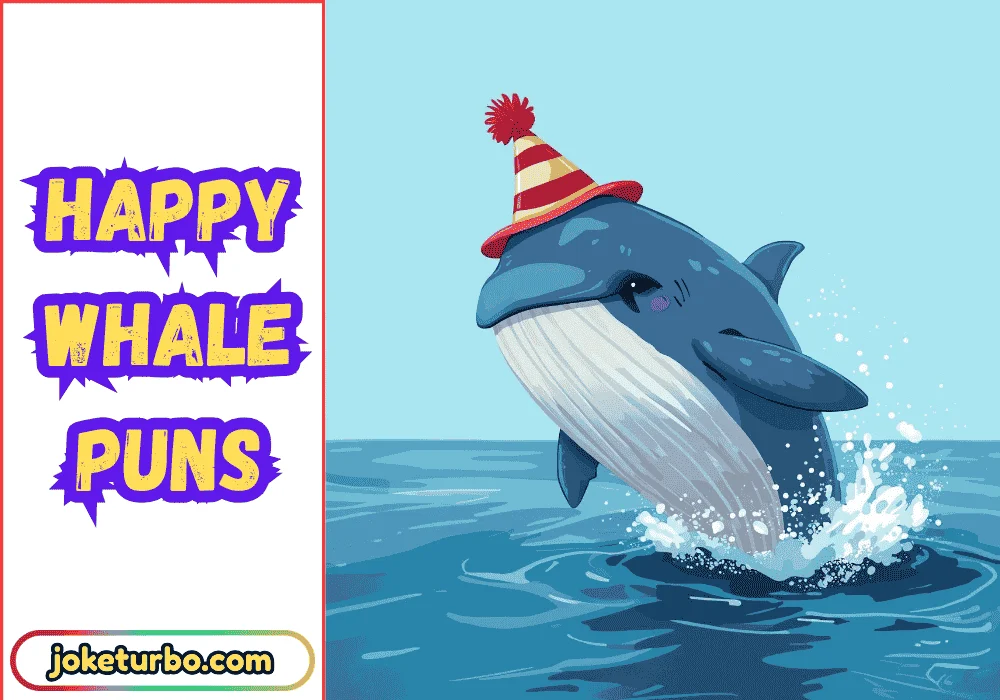 Happy whale puns are funny jokes or wordplay that use the word “whale” or ocean themes to create cheerful humor.