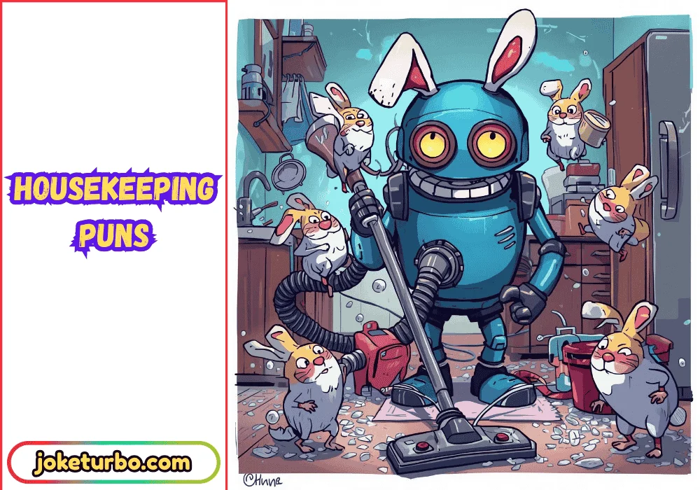Housekeeping puns are jokes or wordplay related to cleaning tasks like sweeping, dusting, mopping, and organizing.