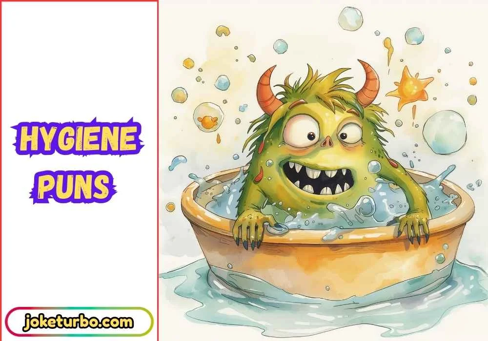 Hygiene puns are funny jokes or wordplay related to cleanliness, soap, brushing teeth, deodorant, and personal care habits.