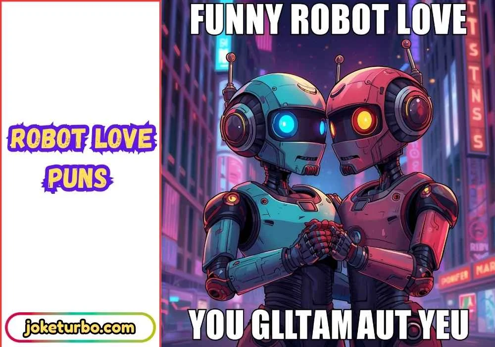 Robot love puns are funny wordplay jokes that combine technology terms and romance. They usually include words like circuits, batteries, coding, or Wi-Fi.
