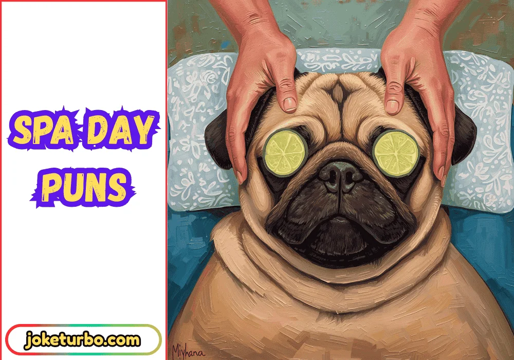 Spa day puns are funny jokes or wordplay related to spas, relaxation, skincare, massages, and self-care routines.